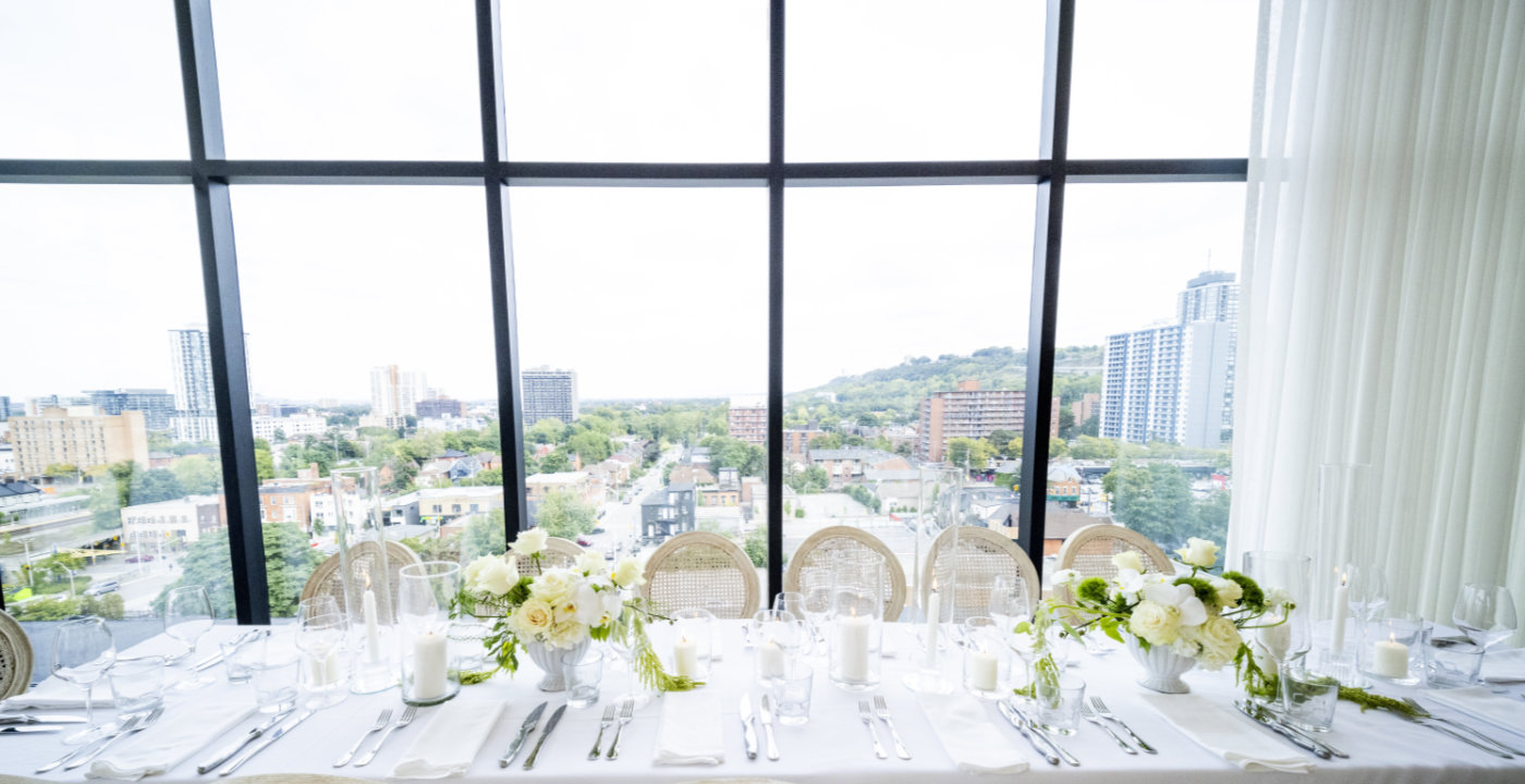 Located above Ciao Bella restaurant on the 9th floor of the Chelsea Building, the Penthouse features floor to ceiling windows with expansive views of the city and escarpment. Experience our outdoor patio, with a dual sided bar and the best in hospitality for a day of love, romance and beauty.