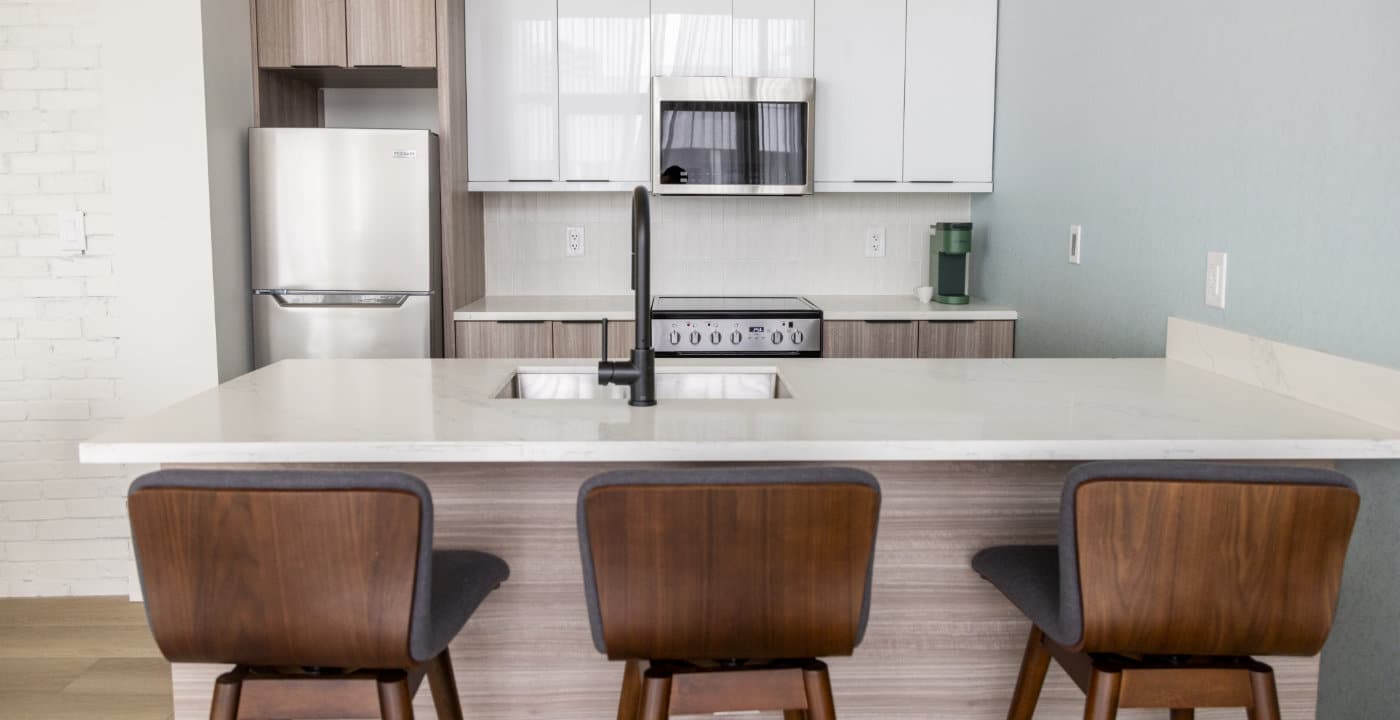 Enjoy the convenience of the in-suite kitchen. Amenities include: breakfast bar, Keurig, oven, stove, microwave and an apartment sized fridge with top freezer.