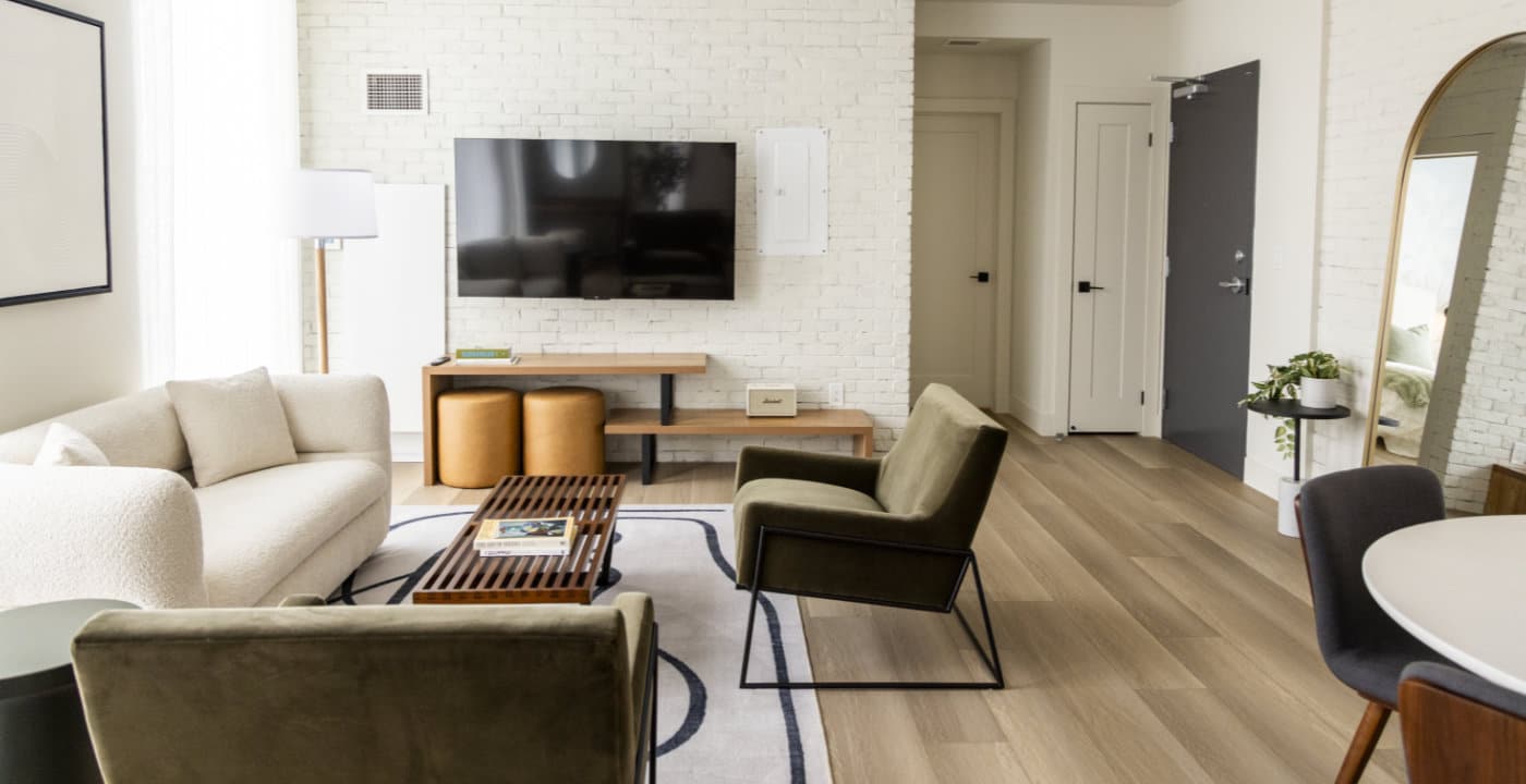 Our living space was designed for connection and function. Get ready for wedding in our spacious, open concept living space, or reminisce over a fresh cup of coffee from the in-suite Keurig.