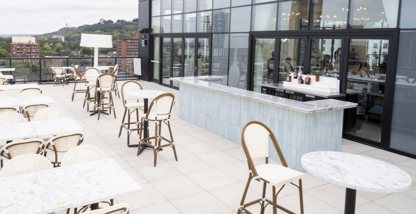 Become entranced by skyline views from our seasonal outdoor patio, perfect for hosting cocktail parties, corporate and private events, and private dining. Full and exclusive access to the outdoor patio is included for Spring/ Summer wedding packages, seating 80 guests and 100 standing. *Patio heaters and available upon request.